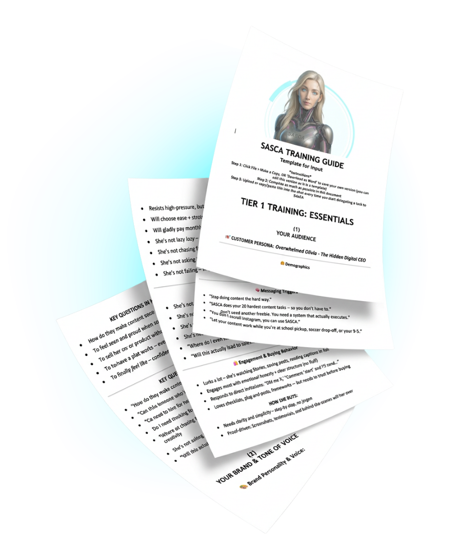The exact steps you need to follow to get SASCA plugged in to your business, and allow you to reclaim 20+ hours a week and get your content out there!